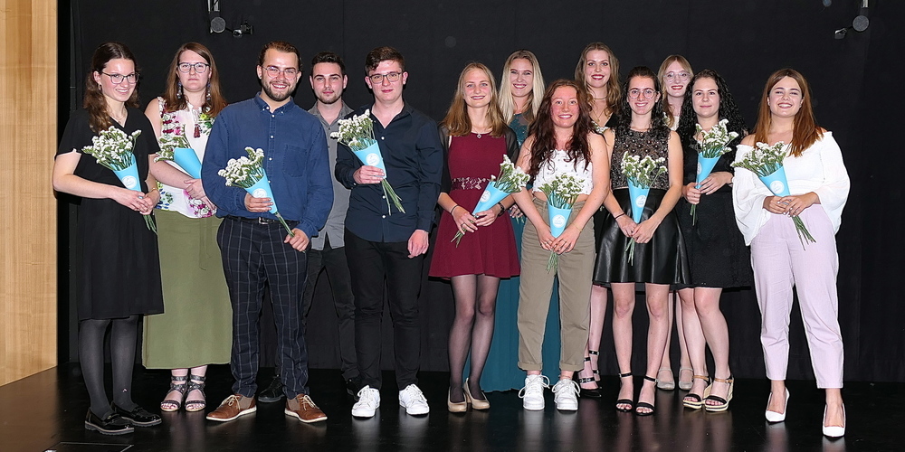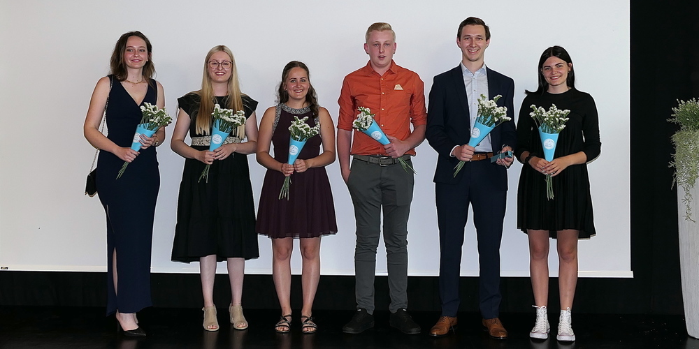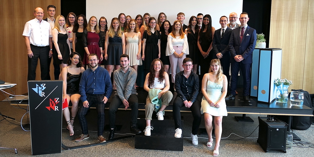 Anschliessend wurden jeweils vom Abteilungsleiter beim BZR Altstätten Felix Wetter die erfolgreichen Diplomandinnen und Diplomanden mit ihren Noten aufgerufen. Jene mit einem Notenschnitt von unter 5.0 wurden mit ihrem Foto vom August 2018, dem Beginn ihrer Zeit am BZR, vorgestellt, was zu einiger Heiterkeit führte. Denjenigen, die einen Notenschnitt von über 5.0 erreicht haben, wurde von Rektor Grunauer persönlich gratuliert.