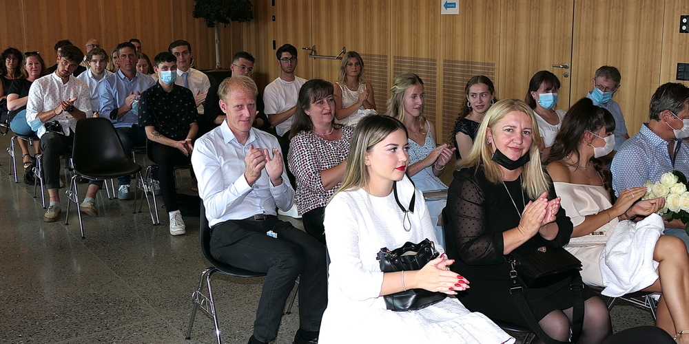Die Diplome wurden vom Kanton bereits vorab allen zugestellt. Sodass es keine persönlichen Überreichungen der Fähigkeitszeugnisse gab. Anders bei den Berufsmaturanden, die ihre Maturabestätigungen «live» erhielten. Jeder der Diplomanden durfte maximal zwei Personen als Begleitung mitbringen, sodass alle der restlich noch bestehenden Coronaschutzvorschriften eingehalten werden konnten.