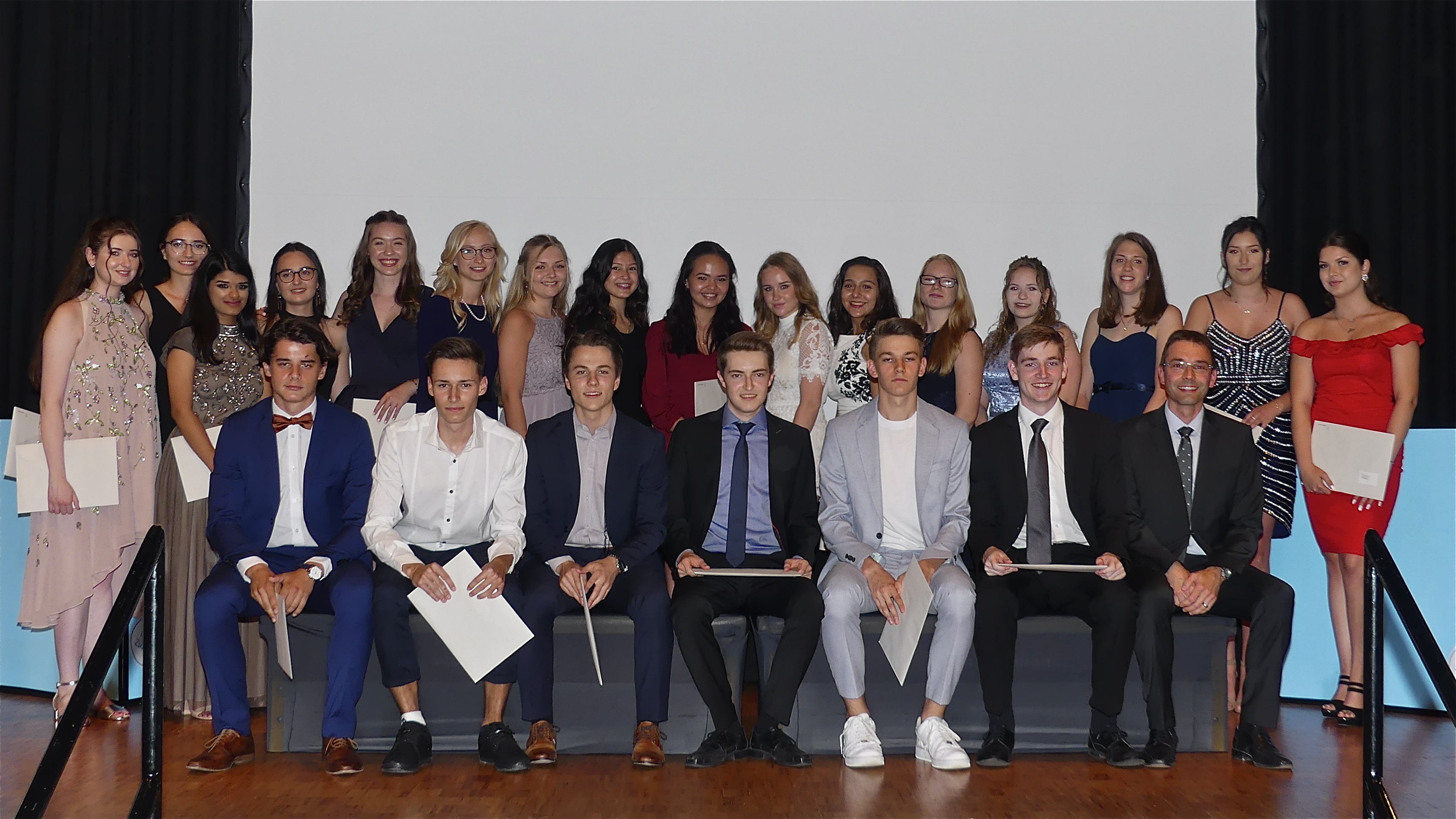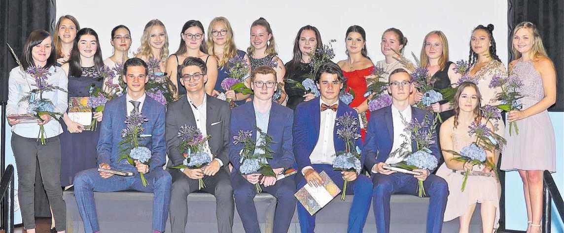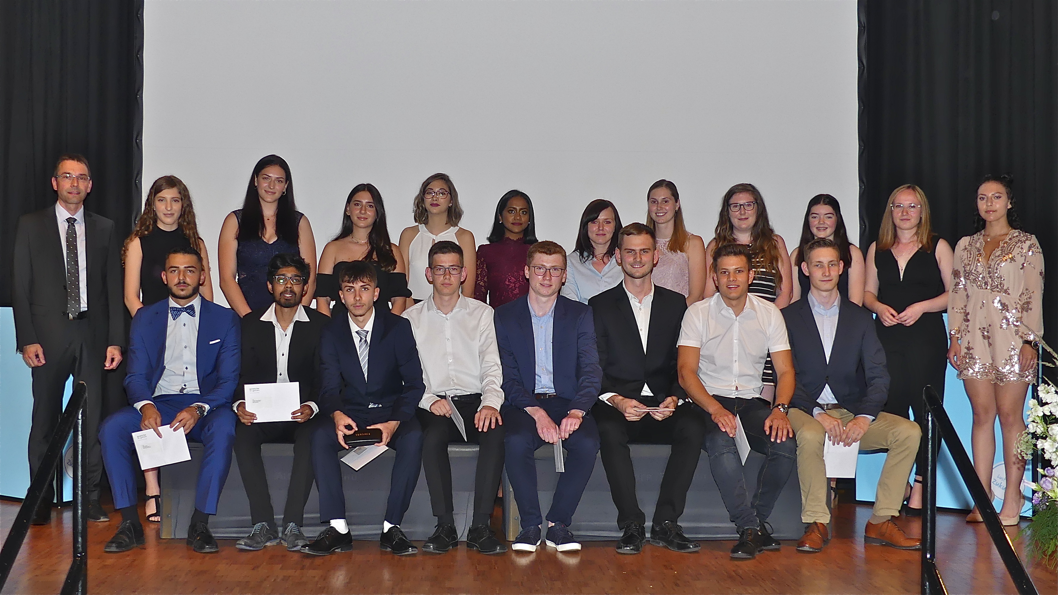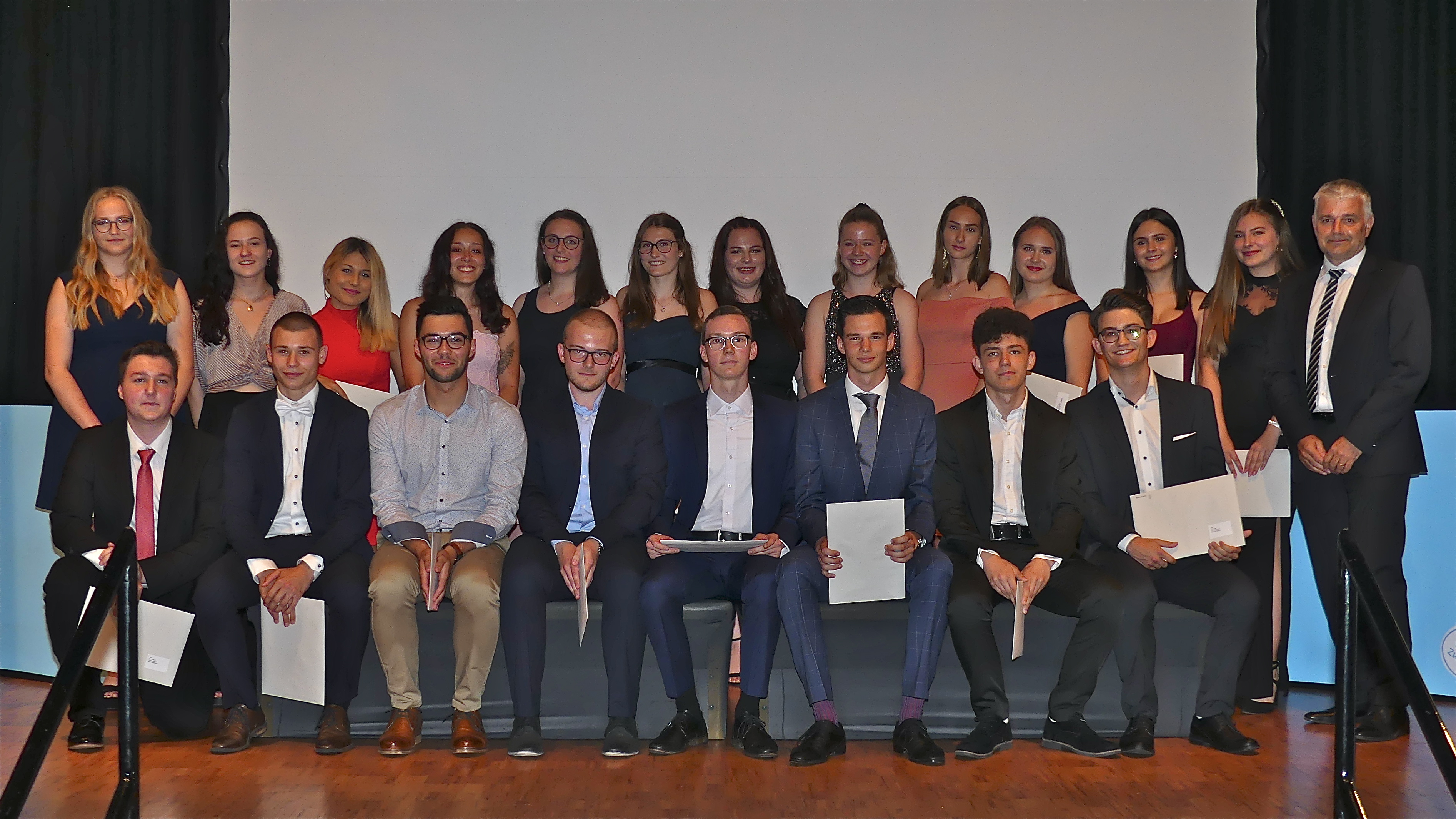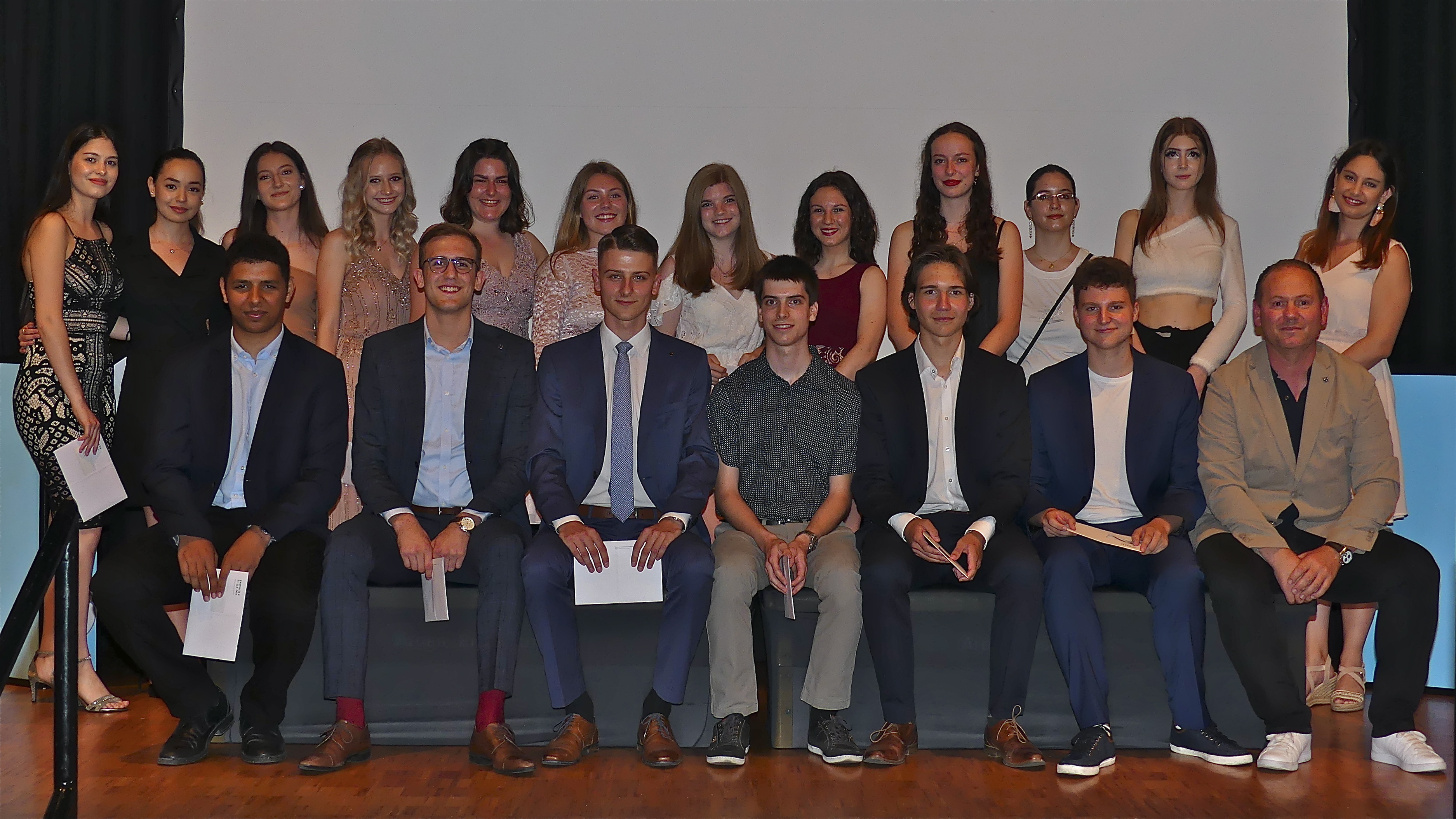 Zahlreiche Absolventen wurden nach Übergabe der Zeugnisse nochmals auf die Bühne geholt und für Notendurchschnitte von 5,3 bis 5,5 gesondert ausgezeichnet. Die besten Noten überhaupt erzielte Dominic Zigerlig aus Oberriet, der einen exzeptionellen Schnitt von sagenhaften 5,7 erzielte.