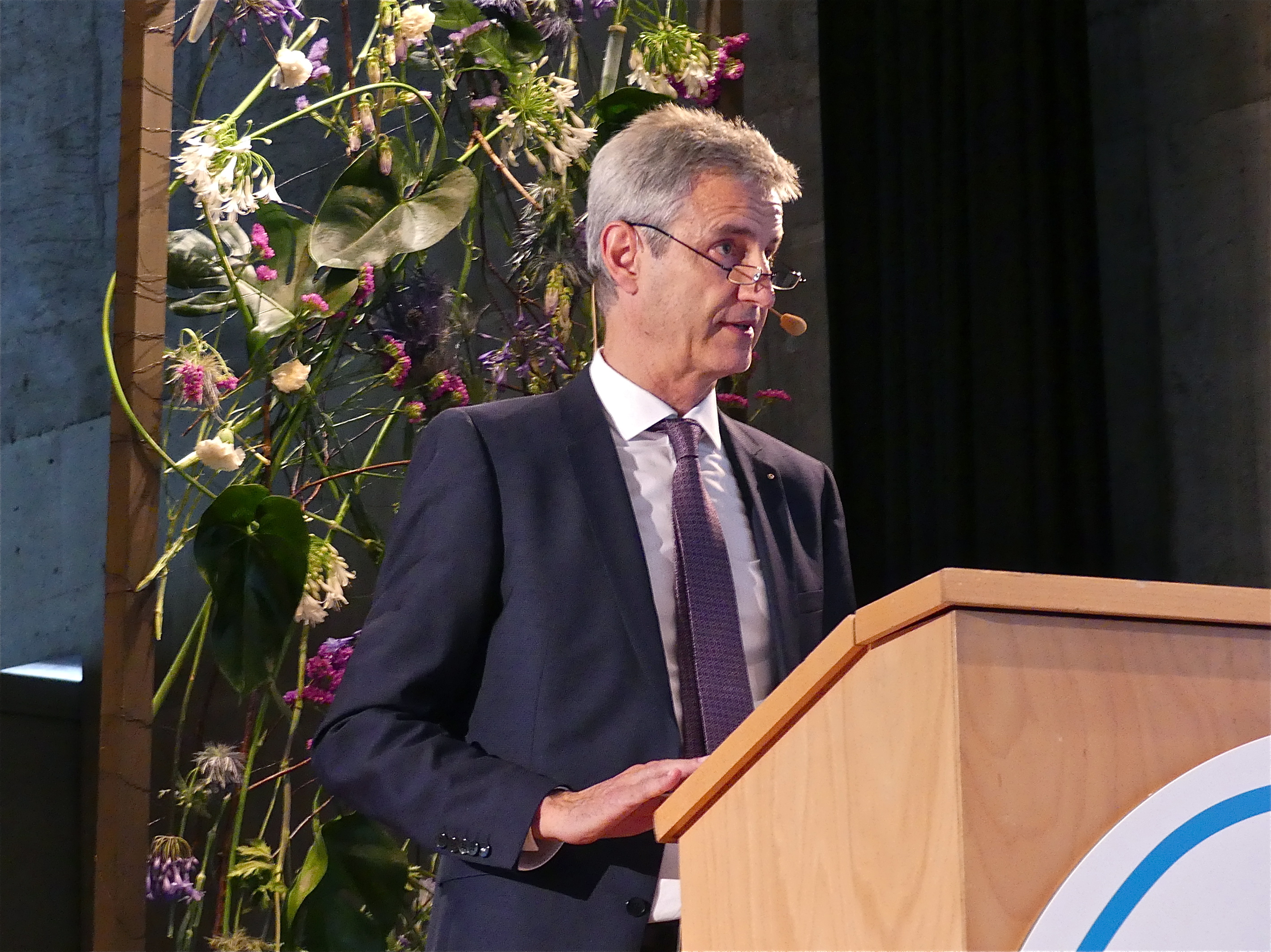Anhand der Fabel von den beiden Fröschen, die in eine Milchtonne gefallen sind, nicht mehr aus derselben herauskommen und von denen einer überlebt, weil er nicht aufgibt und die ganze Nacht die Milch zu Butter strampelt, demonstrierte Rolf Grunauer, dass man nie aufgeben, sondern seine Chancen nutzen soll. «Die Zukunft gehört den lernwilligen Optimisten!» Dank der Leistungsbereitschaft und ihres Willens haben sich die jungen Kaufleute erfolgreich beruflich qualifiziert und das eidgenössische Fähigkeitszeugnis, den eidgenössischen Berufsmaturitätsausweis oder das eidgenössische Berufsattest erhalten. Und dies durchwegs mit erfreulichen Noten.