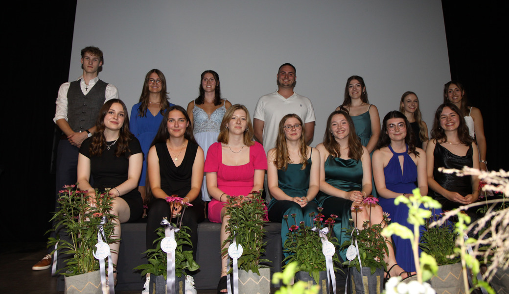 Die Diplomfeier der Kaufleute fand dieses Jahr in der Altstätter Schöntalturnhalle statt, nur hundert Meter vom Berufs- und Weiterbildungszentrum Rorschach-Rheintal entfernt. Die Lernenden der Floristikklassen haben im Rahmen einer freiwilligen Projektarbeit die Dekoration geplant, gezeichnet und letztlich auch umgesetzt. Musikalisch umrahmt wurde die Feier vom Duo Rae and Cook mit Amber Sieber und Dennis Koch.