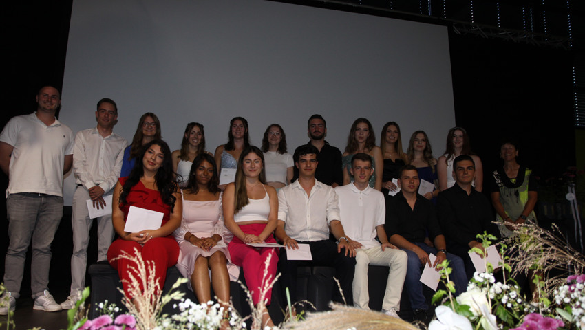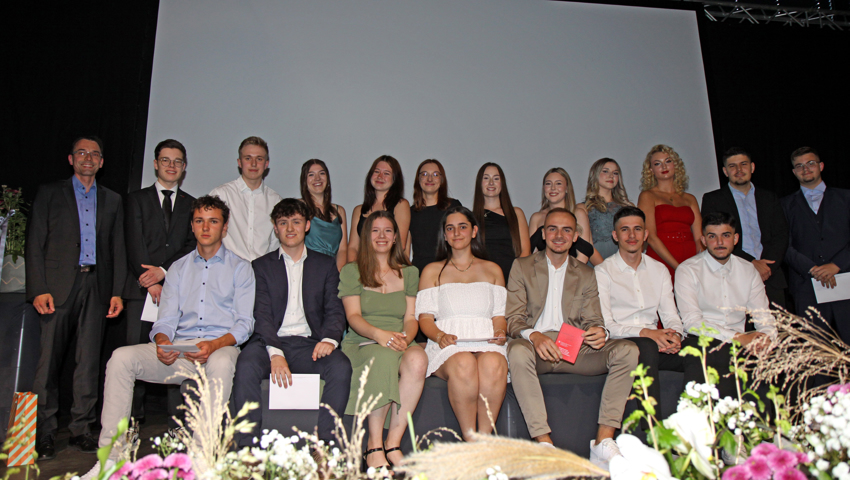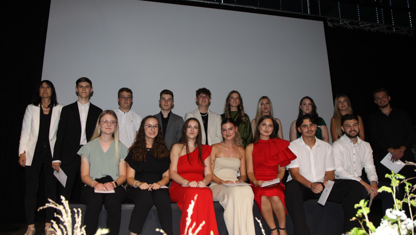 Anschliessend wurden alle Diplomandinnen und Diplomanden auf die Bühne gebeten, wo ihnen die Klassenlehrer ihre Zeugnisse überreichten. Im B-Profil waren 27 Kandidatinnen an die Prüfung angetreten. 26 haben bestanden. Im E-Profil sind 89 Teilnehmende angetreten. Davon haben 85 die Prüfungen erfolgreich absolviert. Die Berufsmaturitätsprüfungen haben 21 von 22 Lernenden bestanden.