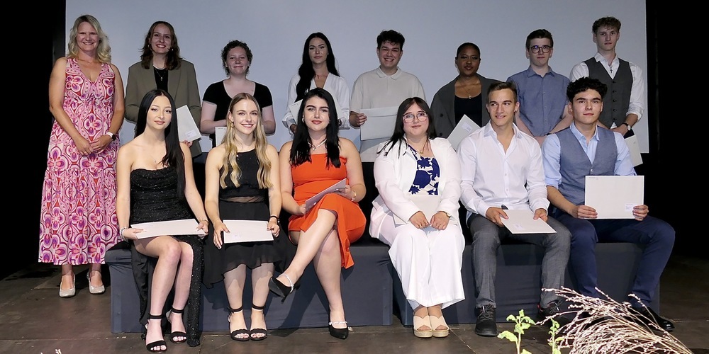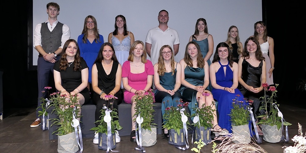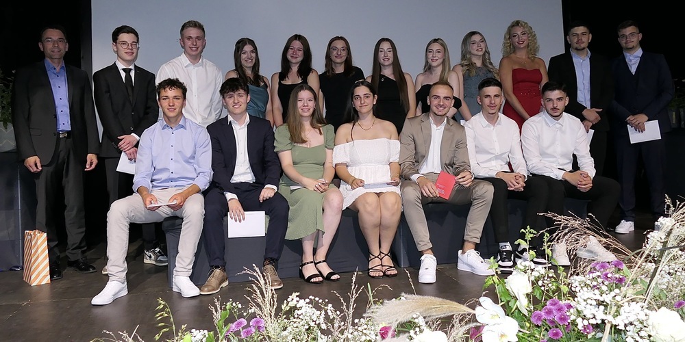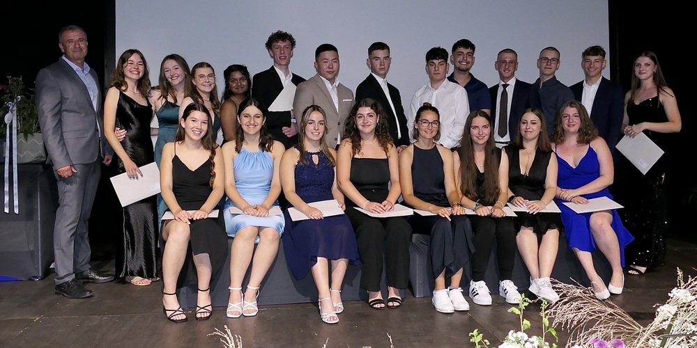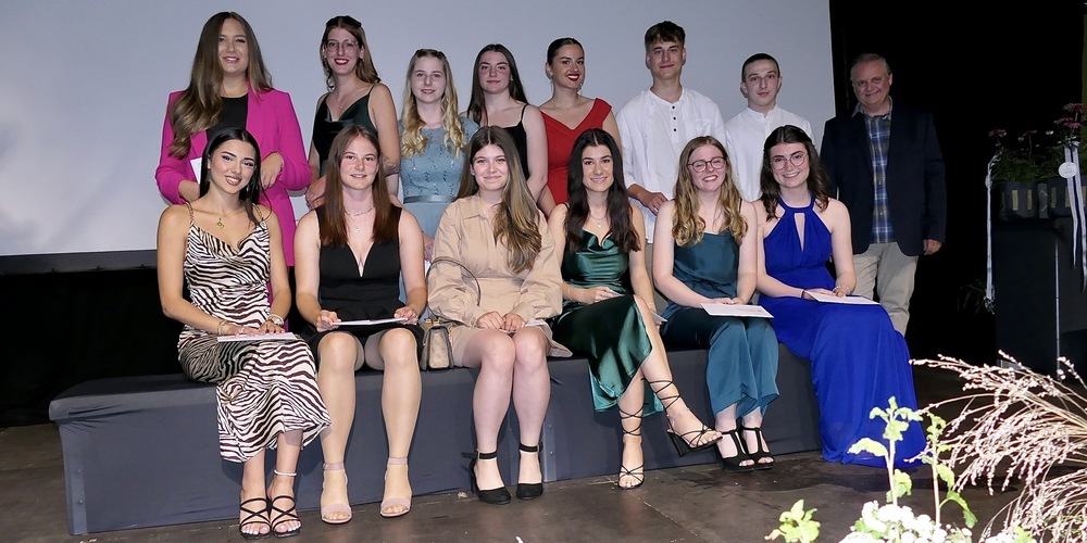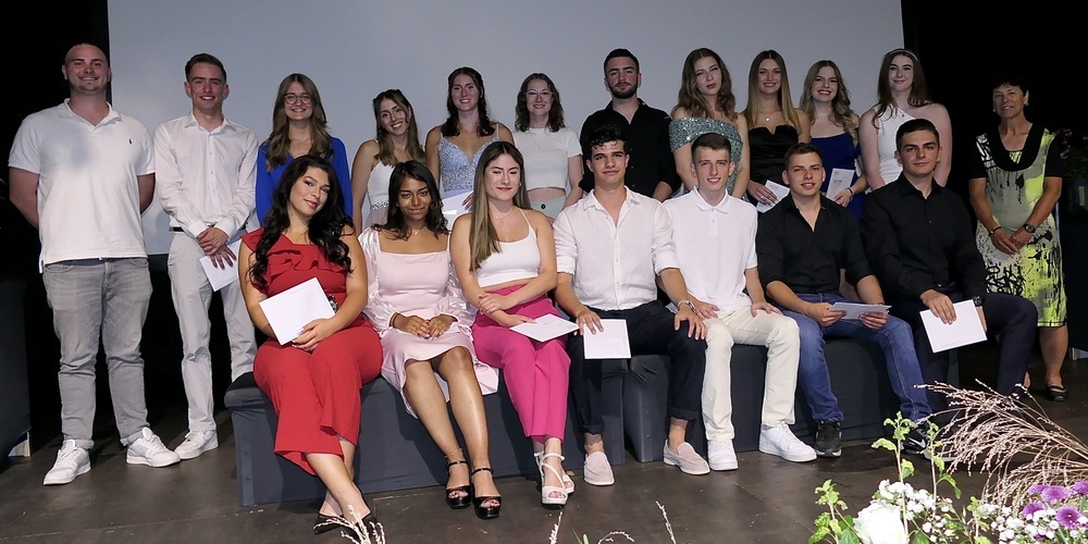 Nach den Ansprachen standen dann die Absolventinnen und Absolventen der kaufmännischen Lehre im Mittelpunkt. Jeder wurde einzeln aufgerufen und konnte sein Diplomzeugnis in Empfang nehmen. Besonders hervorgehoben und geehrt wurden jene Absolventen die einen besonders guten Notendurchschnitt hatten: Jessica Frei von der Gemeindeverwaltung Au und Delia Kobelt von der Clientis Biene Bank mit jeweils 5,6 sowie Elea Alinga Halter von der Raiffeisenbank Mittleres Rheintal mit einem beinahe unglaublichen Notenschnitt von 5,7.