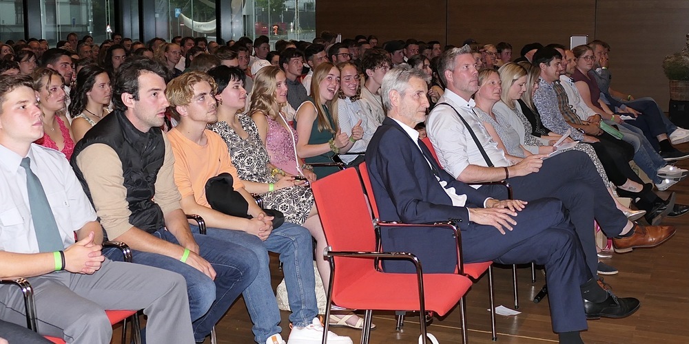 Eine weitere Grussbotschaft überbrachte Rolf Grunauer als Rektor des Berufs- und Bildungszentrums Rorschach-Rheintal, der in seinen Ausführungen anhand von Zitaten berühmter Persönlichkeiten die Lernenden anmahnte, sich stets dem Wandel der Zeit, wie aktuell der sich durch ChatGPT bietenden neuen Möglichkeiten, anzupassen.