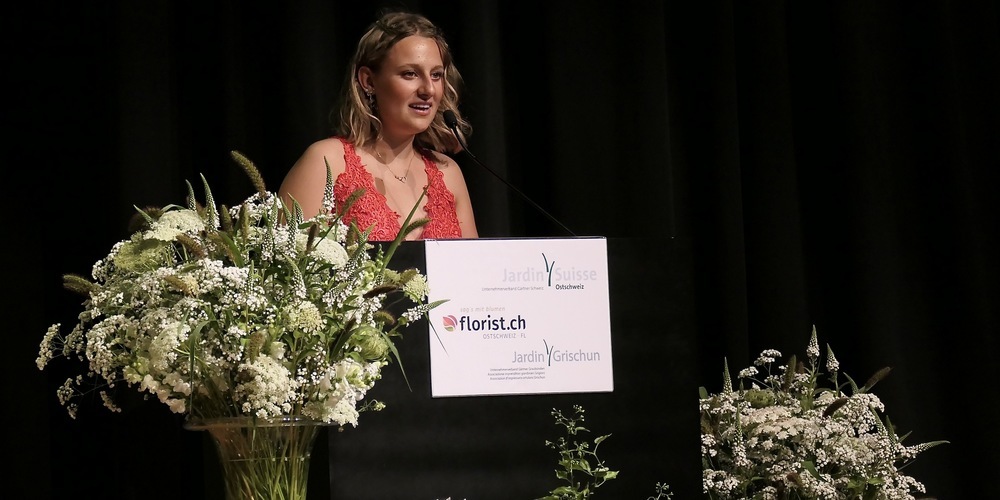 Evelyn Beck, Präsidentin von Florist.ch Ostschweiz und Liechtenstein, moderierte gemeinsam mit Marco Schafflützel, Präsident von JardinSuisse Ostschweiz, diesen Event. Sie verglich den Werdegang der Zeugnisempfänger mit einer Pflanze, die vom Keimling zur blühenden Blume wird. «So wie die Pflanze von Gärtnern und Floristen unterstützt und gepflegt wird, seid ihr von euren Eltern, Freunden und Ausbildnern im Wachstum unterstützt worden.»