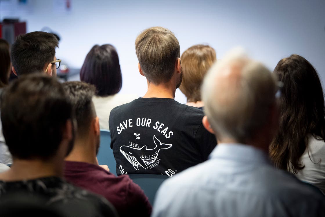 Der renommierte Klimaforscher der ETH Zürich Reto Knutti eröffnet sein Referat mit den Worten «der Klimawandel ist Realität und der menschliche Einfluss darauf ist eindeutig». Faktenbasiert und ohne Einbezug seiner persönlichen Meinung präsentiert er den rund hundert Teilnehmenden die Ursachen und die gesellschaftlichen Folgen des Klimawandels. Bei der anschliessenden Resonanzrunde kommen die Berufsschüler zu Wort und haben die Möglichkeit, Knutti Fragen zu seinem Vortrag, aber auch zu seiner Klimapolitik und Lebensweise zu stellen.