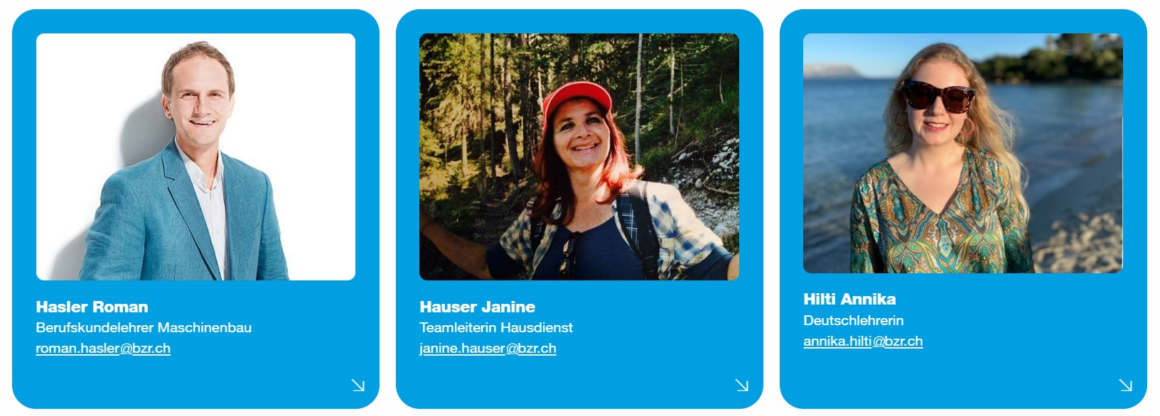 Die Schulleitung, die Fachbereichsleitungen und unsere Mitarbeitenden der Administration und Dienste freuen sich auf Ihre Kontaktaufnahme.