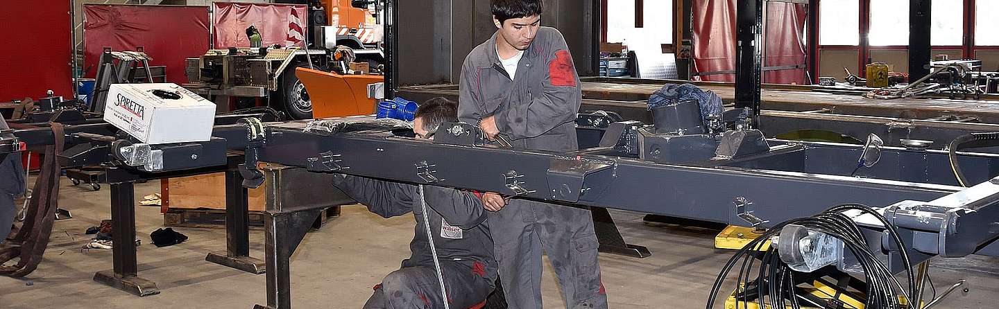 Für die Anfertigung von Aufbauten ziehen sie die Pläne als Arbeitsvorlagen heran. Dabei beginnen sie mit dem Gerippe, das dem Fahrzeug Form und Stabilität gibt. An dieses montieren sie die vorbereiteten Teile. Manchmal setzen sie auch ganze hydraulische Anlagen zusammen oder bauen Klimaanlagen ein.
